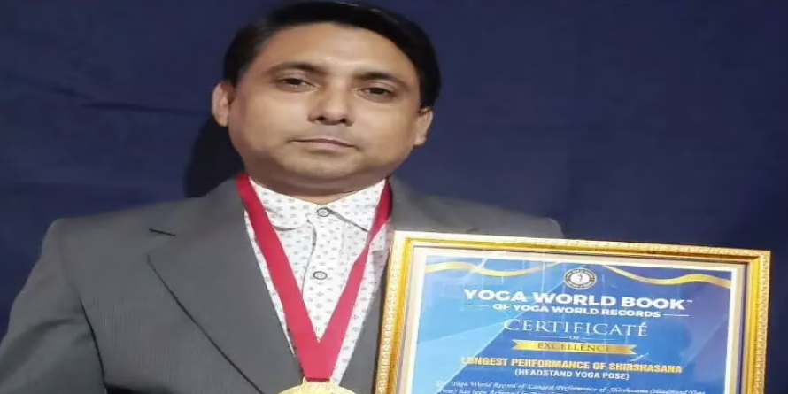 Pranab Kumar Nath, a Yoga expert and a resident of Milan Nagar, has made a new yoga world record by doing longest performance of Shirshasana (handstand yoga pose) in the longest male record category. The event was organized online by Akhil Bharatiya Yog Mahasangh (ABYM)